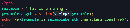 Here I use the built in strlen to get the length of a string and output it into another.